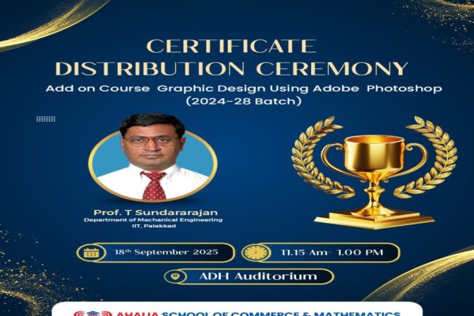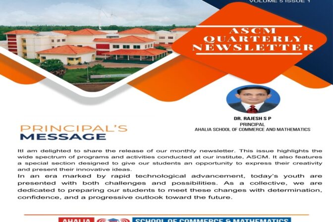 Ahalia School of Commerce and Mathematics (ASCM), a part of Ahalia Health, Heritage and Knowledge Village (AHHKV), is situated in a sprawling self-sustaining and eco-friendly campus in the valleys of pictures Western Ghats, off the National Highway, between Kanjikode and Walayar. The integrated campus, one of the best eco-friendly campuses in the country, is a perfect blend of technology and arts. It is the largest Educational hub of Kerala, providing empowered education to the students. The Institution is affiliated to the University of Calicut.