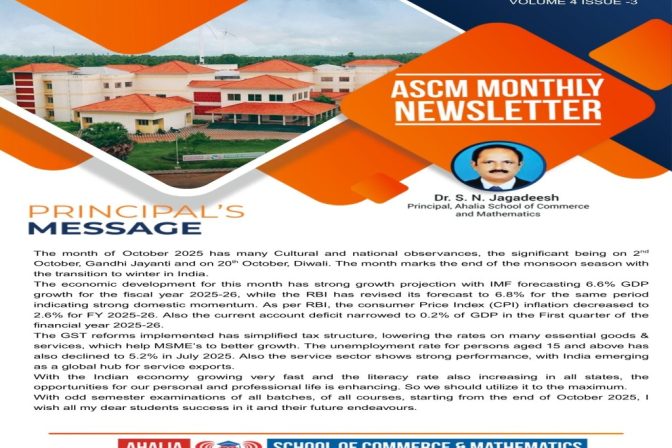 ASCM offers a four year professional BBA Honours , B.Com Honours, BA Journalism and Mass Communication Honours degree programmes which focuses on an industry-integrated pedagogy. With this concept, we commence each academic year with a five day UHV programme. The programme helps the students to understand the nature of the courses they learn and the future opportunities available to them after the degree to become good citizens in their achieved degree.
