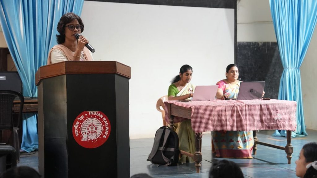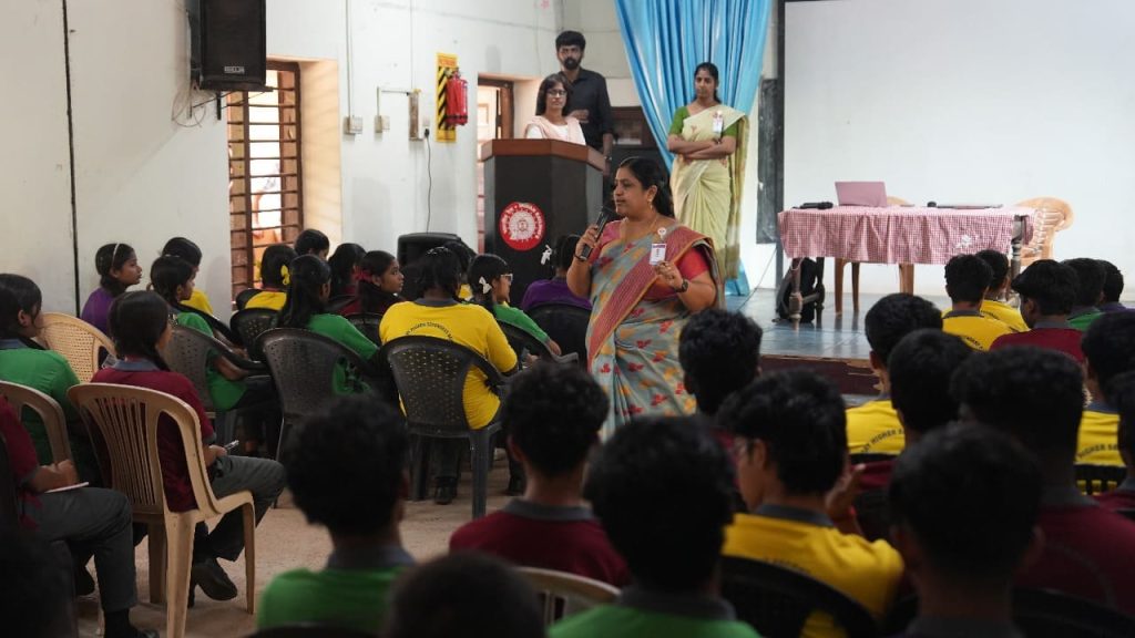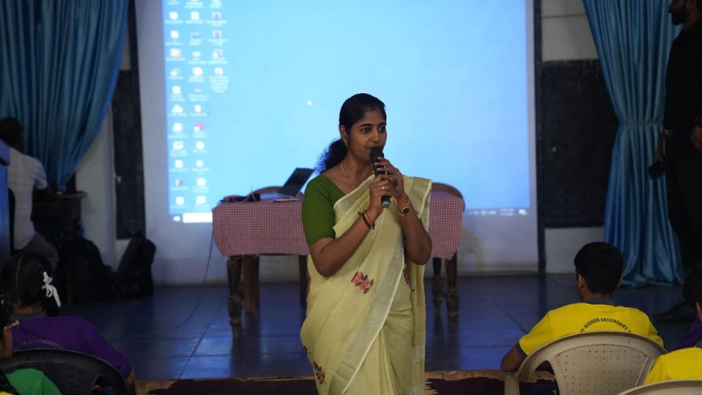The programme commenced with a Welcome Address by Mr. Karthikeyan, Principal, Railway Senior Secondary School, Olavakkode. This was followed by an introduction of Ahalia by Ms. Abisha K A, Executive – Academics Outreach, who also highlighted the importance of responsible digital behaviour and the growing relevance of cyber awareness among students.