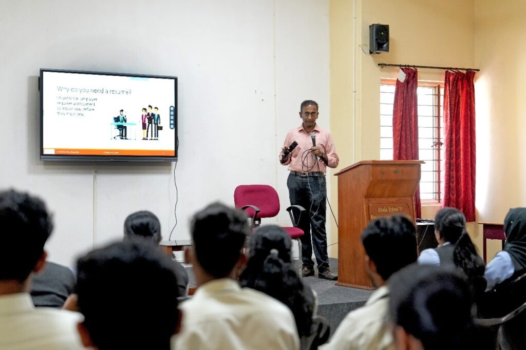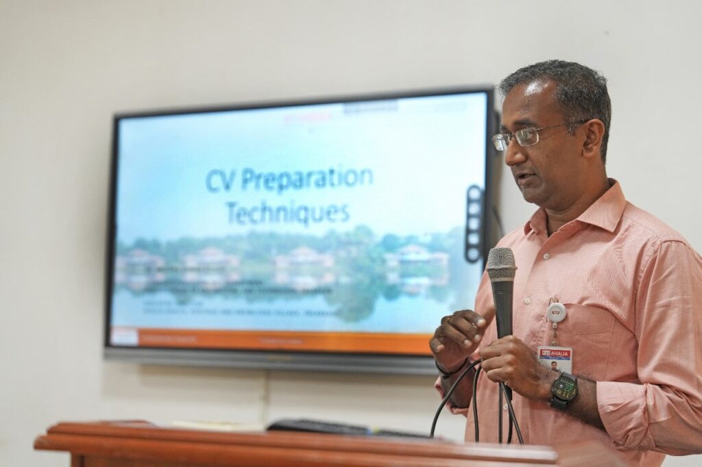 On Tuesday, 30th January 2024, Ahalia School of Commerce and Mathematics conducted a talk on the topic “CV Preparation Techniques” for BBA students. The resource person of the session was Dr. Krishna Kumar Kishor, Executive Director, Ahalia Group of Institutions, Palakkad. The programme commenced at 11:30 am in ASCM Seminar Hall. Mr. Niranjan, First Year BBA student welcomed the resource person, the principal, all the students and faculties. Then the resource person started the session. The session was conducted to give a brief knowledge about what is a C V and a resume and how it has to be prepared by a fresher or an experienced person. The resource person was able to demonstrate and give a clear picture about resume by displaying various samples. He stated the difference between a resume and a CV which was not known to most of the students. He also emphasised the dos and don’ts one should follow while making a CV or resume. The session was very useful and enriching experience for the students. Later feedback of the session and vote of thanks was given by Ms. Laxmi Panickar, first year BBA student. The session was coordinated by Mrs. Sheeba Kumar S, Assistant Professor, ASCM. The session ended by 1:00 pm.