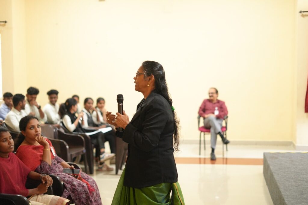 Ahalia School of Commerce and Mathematics conducted a talk on student development program titled “HOW TO BECOME OPTIMISTIC IN PERSONAL AND PROFESSIONAL LIFE” on Wednesday 17th January 2024. The session started by 11:00 am. The speaker of the session was Smt. Chandrika Jayasankar, IRPS (retd) Former Deputy Chief Personnel Officer, Southern Railway. Dr S N Jagadeesh Principal ASCM welcomed all the students and faculties for the session. Laxmi Panicker from 1st year BBA gave a general introduction about the Resource Person. The resource person who herself was a source of motivation to students gave encouraging examples from her own life and inspired students to be self-motivators. She discussed the importance of positive thinking and attitude which brings optimism in our personal life and professional life and such constructive changes can make one brighter and more successful both in personal and professional life. The session was an inspiring one among students. The program was anchored by Drishya from 1st year BBA. Vote of thanks was delivered by Bavana Babu from 1st year BBA. The program ended by 1:00 pm.