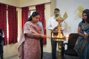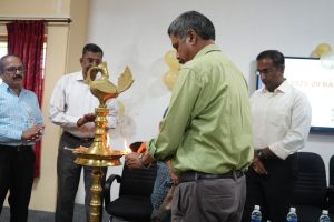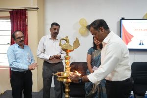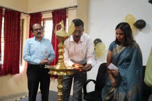 The event began with the live telecast of the state-level inauguration led by the Hon’ble Minister for Higher Education and Social Justice, Dr. R. Bindu. This was followed by our prayer invoking divine blessings, followed by ceremonial lighting of the lamp by dignitaries, marking the formal beginning of the programme.