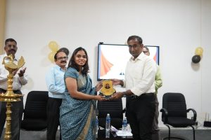 A memento was presented to the Chief Guest by Dr. Krishna Kumar Kishor as a token of appreciation. The formal session ended with the Vote of Thanks by Ms. Sheeba Kumar S, Assistant Professor, who extended gratitude to all dignitaries, faculty members, students, and staff for their presence and contributions. After a tea break, the programme resumed with a session on College Rules and Regulations by Ms. Athulya Baby, Asst. Prof. to familiarize the students with the code of conduct and academic guidelines. The day concluded with a campus visit offering students and parents a tour of the campus facilities and environment. The programme ended by 1:00pm.